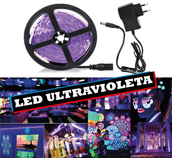 Tira Led 5050 Ultravioleta Luz Negra + Fuente + Tecla