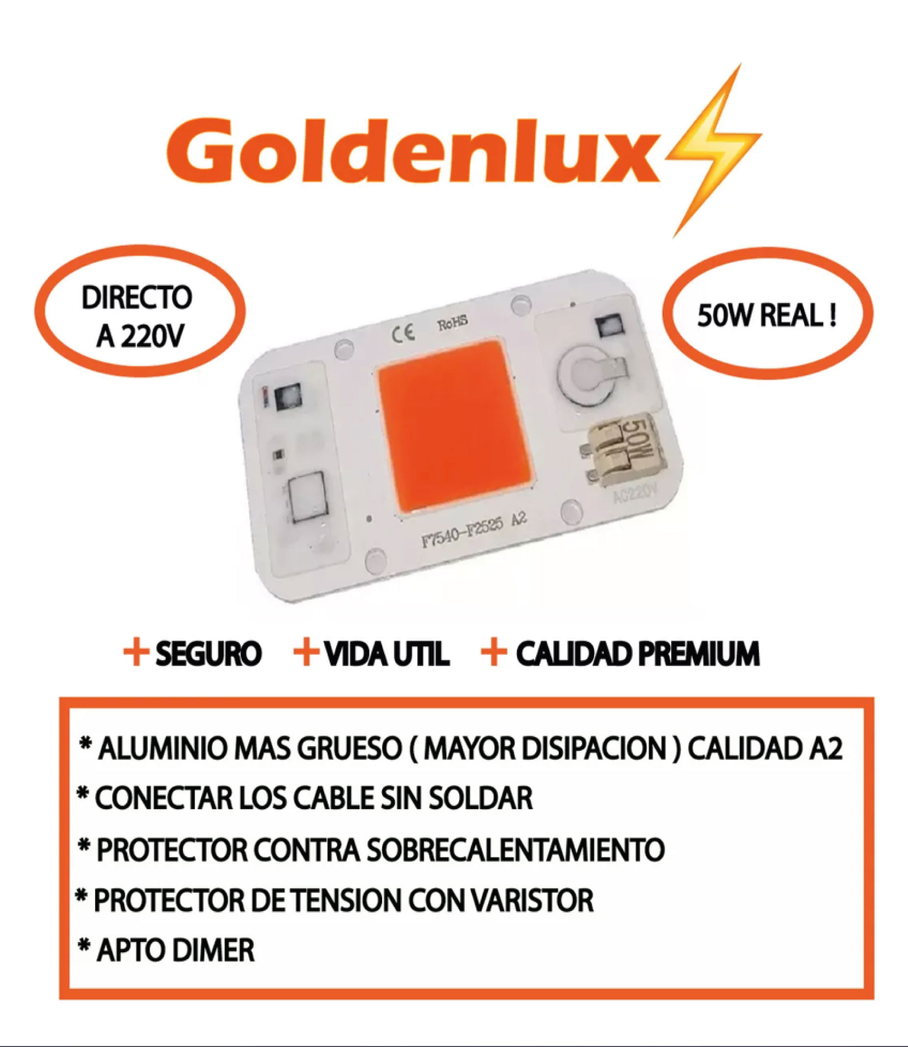 Led Cob 50w Fullspectrum 220v Bornera Protector Tension PROMO 4 X 3