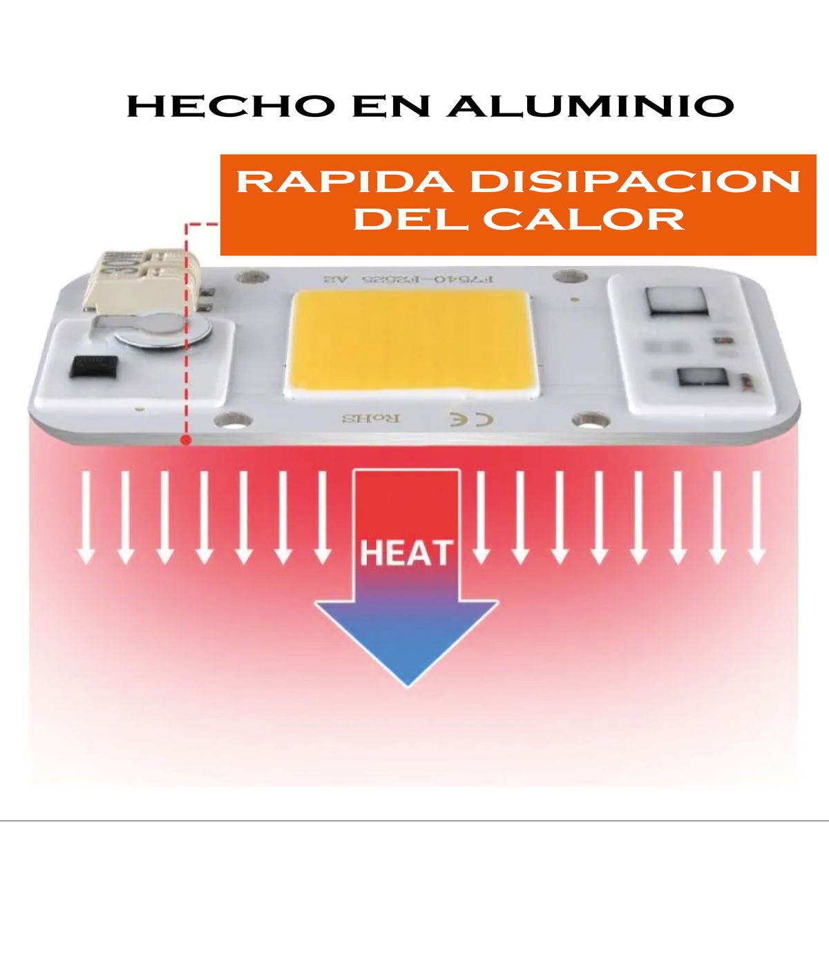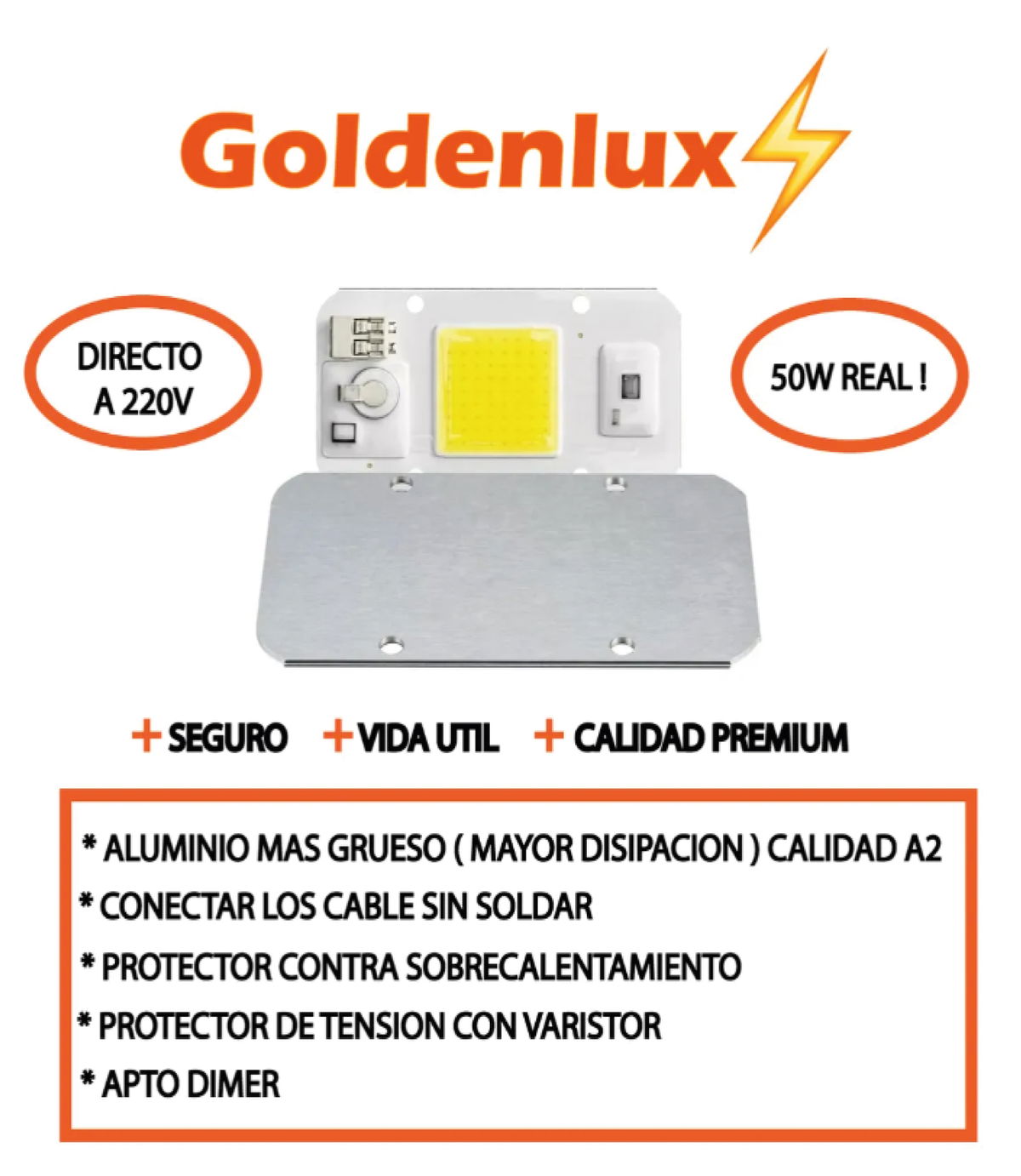 Led Cob 50w Blanco Frio 220v Bornera Protector Tension X 4 UNID